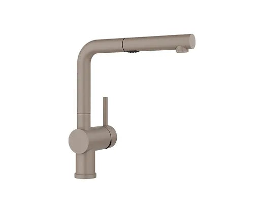 This kitchen faucet features a sleek, contemporary design that seamlessly integrates into modern kitchens. Crafted from premium materials for exceptional durability, it offers a single-lever handle that allows precise control of water temperature and flow. The faucet includes a pull-out spray head, providing versatile functionality for tasks like rinsing vegetables or filling large pots. With its smooth, high-arc spout, it ensures ample space in the sink area for various activities. The elegant truffle finish adds a warm, sophisticated touch to the kitchen decor while being easy to clean and maintain. Engineered for easy installation, it is compatible with standard sink configurations and designed to deliver long-lasting, reliable performance. This combination of style and practicality makes it an ideal choice for enhancing both the aesthetics and functionality of any kitchen space.