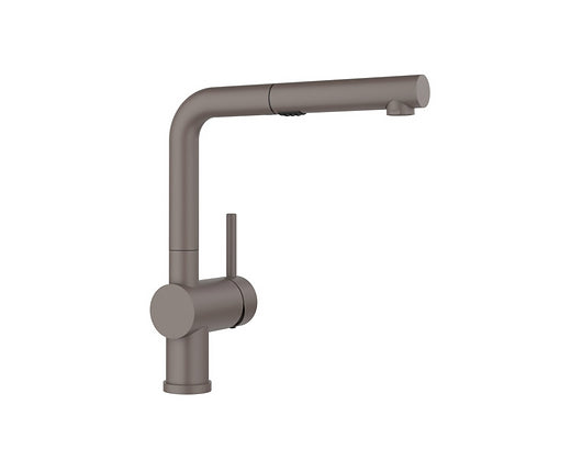 A sleek kitchen faucet in a sophisticated gray finish offers a modern touch to any kitchen decor. Featuring a convenient pull-out spray head, it allows easy switching between aerated stream and spray functions for versatile use. The single-lever design ensures effortless control of water flow and temperature, enhancing the user experience. Crafted with high-quality materials, it provides durability and long-lasting performance. The faucet's elegant design combines form and function, making it an excellent addition to contemporary kitchens seeking both style and practicality.