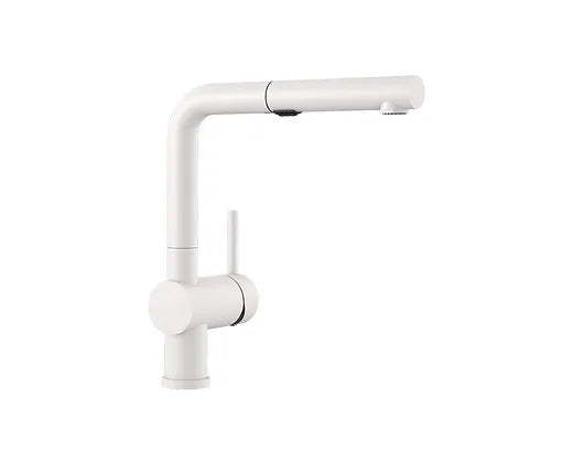 Featuring a sleek, minimalist design, this kitchen faucet offers a seamless blend of form and function, perfect for modern culinary spaces. Its smooth, white finish provides a clean and contemporary aesthetic that complements a variety of kitchen decors. The faucet boasts a high-arch spout, allowing ample room for washing large pots and pans, while the swivel functionality ensures maximum convenience and accessibility. Equipped with a single-lever handle, it delivers effortless control over water flow and temperature adjustments. The faucet is constructed from durable materials to ensure long-lasting performance and resistance to wear and corrosion. Additionally, the integrated pull-out spray offers versatile cleaning options, making daily kitchen tasks more efficient. Designed with ease of installation in mind, it includes standard connection fittings suitable for most kitchen sinks. This fixture not only enhances the visual appeal of the kitchen but also adds practical functionality that supports everyday use.
