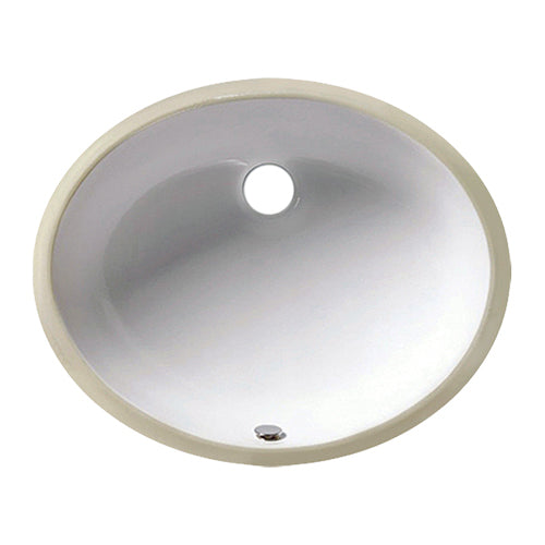 Crafted from premium porcelain, this undermount oval sink features a classic white finish that seamlessly complements any bathroom decor. Its smooth, non-porous surface ensures lasting durability and promotes a hygienic environment by resisting stains and scratches. The sleek undermount design provides a flawless transition from countertop to sink, creating a clean and sophisticated aesthetic. With an elegant oval shape, it offers ample basin capacity while fitting comfortably within various vanity sizes. Compatible with a range of standard faucets and fixtures, this sink is a versatile choice suitable for both modern and traditional bathroom designs.