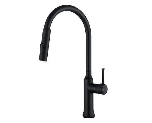 Featuring a sleek and modern silhouette, this matte black kitchen faucet brings a touch of contemporary elegance to any culinary space. The high-arc spout provides ample clearance for washing large pots and pans, while the pull-down spray head offers versatile functionality with both aerated stream and powerful spray options. Crafted with durable materials for long-lasting performance, it includes a ceramic disc valve to ensure smooth and drip-free operation. The single-handle design allows for effortless control of water temperature and flow, enhancing the overall kitchen experience. Designed for easy installation, this faucet is compatible with a variety of sink configurations, making it a versatile choice for updating kitchen decor.