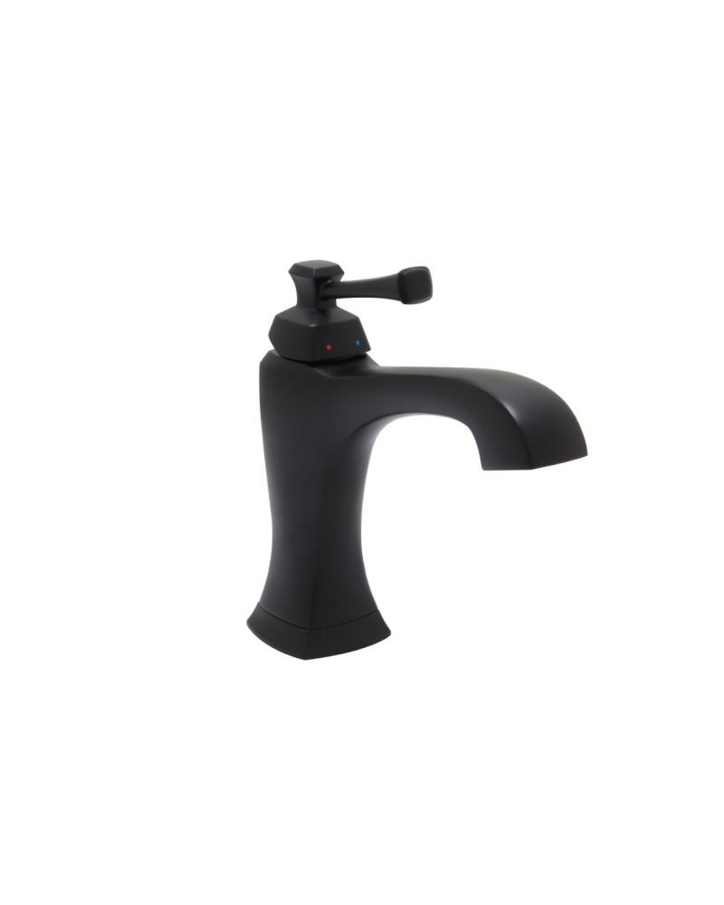 A sleek single-control bath faucet in a matte, satin black finish is showcased, offering a blend of modern aesthetics and functional excellence. Constructed from solid brass, it ensures superior durability and corrosion resistance for enduring appeal. The contemporary design enhances any bathroom décor, providing a sophisticated focal point. The single-handle lever allows for precise control over water temperature and flow, enhancing user convenience. Incorporating a high-quality ceramic disc valve, it delivers smooth operation and a drip-free experience, contributing to water efficiency. The faucet is ADA compliant, making it accessible and user-friendly for individuals with varying abilities. The installation is straightforward, fitting standard configurations, and includes necessary mounting components for ease of setup. The matte, satin black finish not only adds a touch of elegance but also resists fingerprints and water spots, maintaining a clean and refined look. This faucet seamlessly combines style, durability, and functionality, making it a valuable enhancement to any bathroom environment.