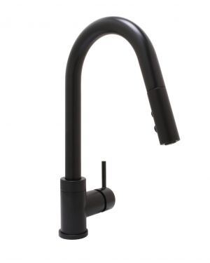 Exuding refined elegance, this matte satin black kitchen faucet combines contemporary design with superior functionality, making it a striking centerpiece for any modern kitchen. Engineered from premium-grade materials for exceptional durability, it features a sleek single-handle operation that allows precise control over water temperature and flow. The high-arc spout provides ample clearance for large cookware and rotates fully to offer complete sink access. An integrated pull-down spray head enhances versatility, seamlessly switching between aerated stream and powerful spray modes to tackle various kitchen tasks efficiently. The corrosion-resistant finish ensures lasting beauty even with daily use, while the ceramic disc valve technology minimizes the risk of leaks and drips for reliable, maintenance-free performance. Designed for versatility, it supports both single-hole and multi-hole sink configurations and includes an optional deck plate for flexible installation.