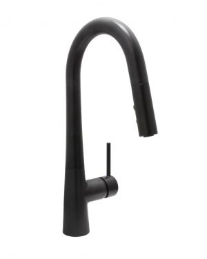 Featuring a sophisticated matte satin black finish, this contemporary kitchen faucet seamlessly blends modern design with exceptional functionality. The sleek, minimalist silhouette is complemented by smooth curves and clean lines, making it a striking addition to any kitchen decor. Crafted with precision, it features a high-arch spout that provides ample clearance for filling and cleaning large pots and pans, while a pull-down spray head offers versatile water flow options for various kitchen tasks. The faucet is constructed from premium materials to ensure durability and long-lasting performance, and its ceramic disc valve technology guarantees smooth, drip-free operation. Designed for easy installation, it fits seamlessly into single-hole sink configurations, enhancing the overall aesthetics and efficiency of the kitchen workspace.