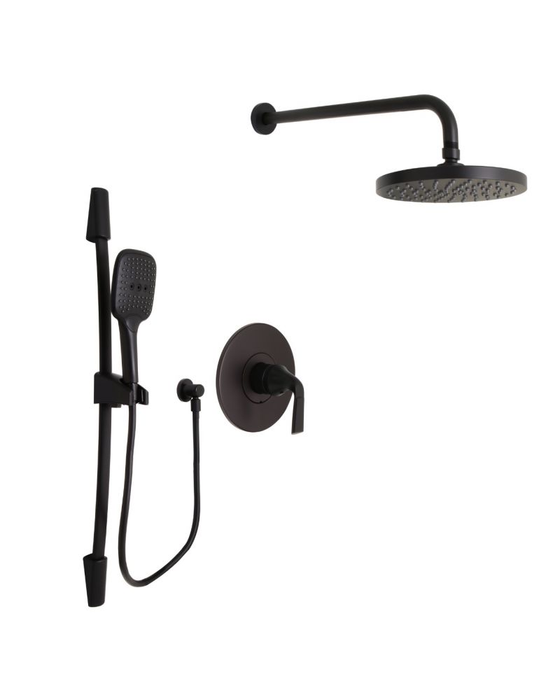 A sleek shower combo kit in a matte, satin black finish offers a modern and sophisticated touch to any bathroom decor. Featuring a fixed showerhead and a convenient handheld wand, it provides versatility and functionality for an enhanced shower experience. The carefully engineered design ensures consistent water flow and pressure, delivering a relaxing and rejuvenating shower every time. Constructed with high-quality, durable materials, this shower system is built to resist corrosion and tarnishing, maintaining its pristine appearance over time. The easy-to-use diverter allows for effortless switching between the showerhead and wand, catering to personal preferences and needs. With its elegant design and superior performance, this shower combo kit effortlessly combines style and practicality for an upgraded bathroom experience.