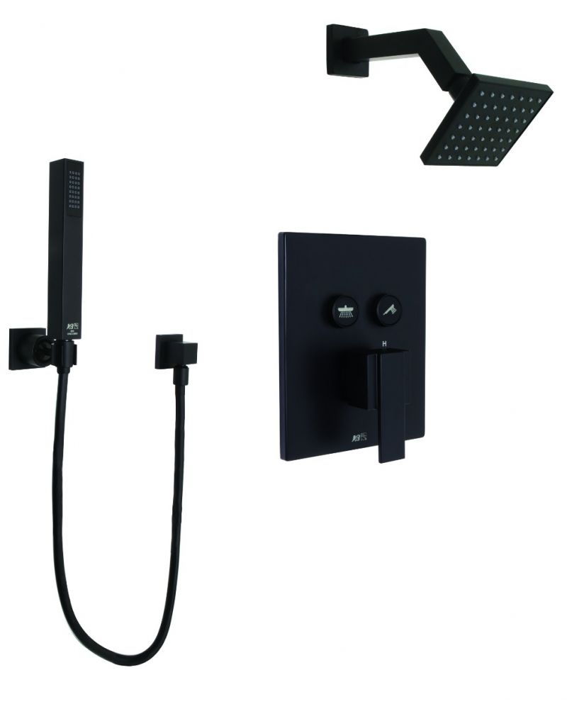 This shower combo kit in a matte, satin black finish combines modern aesthetics with versatile functionality, featuring a sleek push-button diverter for seamless switching between the overhead shower and the handheld wand. Crafted with meticulous attention to detail, its contemporary design integrates seamlessly into a variety of bathroom decors, providing both style and performance. The handheld shower wand offers enhanced flexibility for targeted rinsing and an elevated shower experience, while the durable construction ensures long-lasting use. The wall-mounted installation contributes to a clean, uncluttered look, and the smooth operation of the controls enhances the overall user experience. This fixture is engineered to deliver consistent water flow and reliable performance, making it a sophisticated addition to any modern bathroom setting.