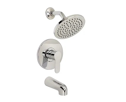Featuring a polished chrome finish, this modern tub and shower combination kit offers a sleek addition to any bathroom. The set includes a single-handle faucet for smooth temperature and water flow adjustment, a pressure-balanced valve designed to maintain consistent water temperature, and a versatile showerhead that provides optimal water coverage. The minimalist design complements contemporary decor, while the durable construction is built for reliable performance over time. Designed for easy installation and compatibility with standard plumbing systems, this combo kit is ideal for updating bathroom fixtures with style and functionality.