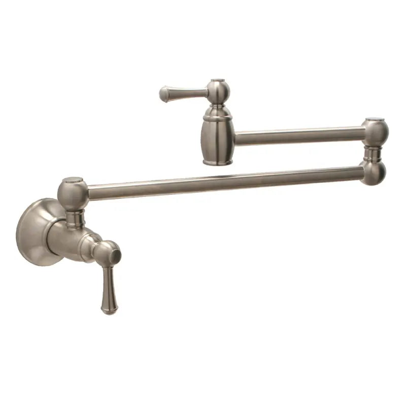 Crafted with meticulous attention to detail, this satin brass pot filler faucet adds a touch of luxury to any kitchen space. The handmade design showcases exceptional craftsmanship, offering unique character and superior quality. Featuring a smooth satin brass finish, it complements a variety of kitchen styles with its warm and elegant appeal. The faucet is equipped with a dual-jointed swing arm, providing extended reach for convenient filling of pots directly on the stove, thereby enhancing cooking efficiency and reducing kitchen clutter. Designed to coordinate seamlessly with a double bowl sink, particularly one with a 40/60 configuration, it enhances both functionality and aesthetics in the culinary workspace. Constructed from durable materials, it ensures longevity and reliable performance, while precision-engineered components contribute to a smooth and drip-free operation.