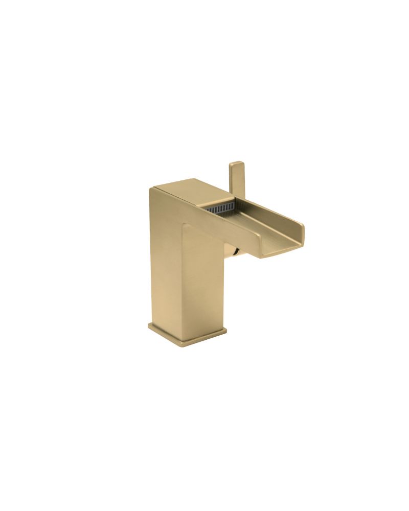 Featuring a sleek satin brass finish, this single-handle bathroom faucet adds a touch of modern elegance to any bathroom décor. Its open channel spout creates a soothing waterfall effect, enhancing the visual appeal while providing a serene washing experience. Crafted from high-quality materials for durability, it offers smooth and precise control over water temperature and flow. The contemporary design complements a variety of sink styles, making it a versatile choice for both renovations and new installations. Easy to install with standard plumbing connections, it combines functionality with aesthetic appeal, making it a standout fixture in any modern bathroom.