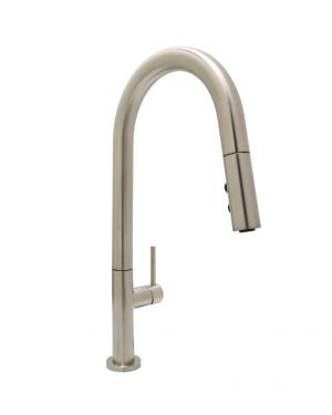 This contemporary kitchen faucet features a satin nickel finish that adds a sophisticated touch to any modern kitchen decor. The high-arc swivel spout offers optimal reach and clearance, making it ideal for filling large pots and cleaning oversized cookware. Equipped with a single-handle design, it allows for seamless control of water temperature and flow. The pull-down spray head boasts dual-functionality, easily switching between an aerated stream and a powerful spray to accommodate various cleaning tasks. Crafted from durable materials, this faucet ensures long-lasting performance and resistance to corrosion. The inclusion of a ceramic disc cartridge minimizes leaks and drips, enhancing reliability and reducing maintenance needs. Designed for versatility, it accommodates both single-hole and multi-hole sink configurations with an optional deck plate, simplifying the installation process. ADA compliance ensures that this faucet meets accessibility standards while providing a blend of style and functionality.