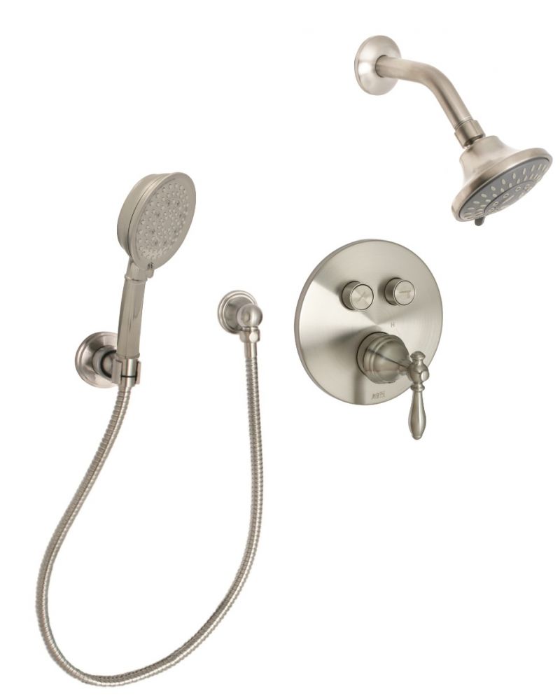 Huntington Brass Satin Nickel Classic Push Button with Wand Shower Combo Kit