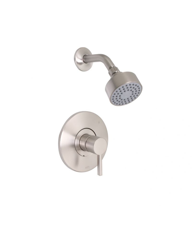 A satin nickel shower combo kit designed to deliver an exceptional bathing experience, featuring a single-function fixed showerhead and a matching hand shower for versatile use. The system includes a pressure-balancing valve with an integral diverter, ensuring consistent water temperature and seamless control between the showerhead and hand shower. Crafted with high-quality brass construction, the kit offers durability and a sleek, modern aesthetic that complements a variety of bathroom décors. The included slide bar provides adjustable height settings for the hand shower, enhancing usability for all users. With a water-efficient design, this shower system combines luxury with eco-friendly performance.