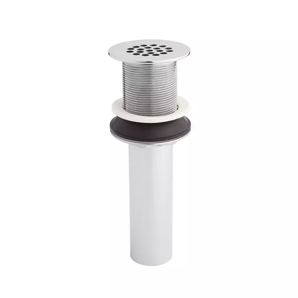 Featuring a lustrous polished chrome finish, this grid drain is meticulously designed for vanity sinks without an overflow outlet. The grid-style strainer efficiently prevents debris from entering the plumbing system while ensuring optimal water flow for a clog-free experience. Crafted from high-quality materials, it boasts exceptional durability and resistance to corrosion and tarnishing, promising long-lasting performance. The universal fit accommodates standard sink installations, offering easy installation and a secure, leak-free connection. Its sleek and minimalist design complements a wide range of bathroom aesthetics, enhancing the overall elegance and functionality of the sink area.