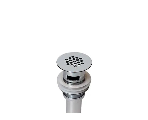 Featuring a grid design, this chrome-finished bathroom sink drain is crafted for vanity sinks equipped with overflow functionality. The high-quality construction ensures durability and resistance to corrosion, providing long-lasting performance in any bathroom setting. Its sleek chrome surface adds a contemporary touch, seamlessly complementing modern fixtures and décor. Designed for compatibility with most standard vanity sinks, installation is straightforward, making it a practical choice for both renovations and new builds. The efficient grid design allows for proper drainage while preventing debris from entering the plumbing system, contributing to a cleaner and more hygienic bathroom environment.